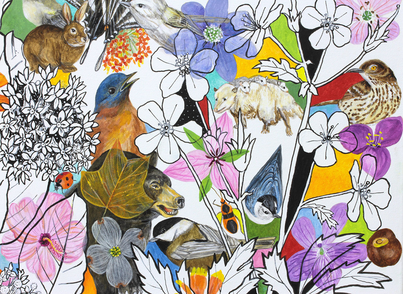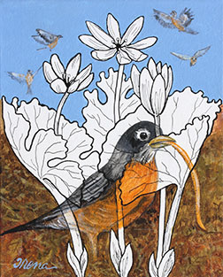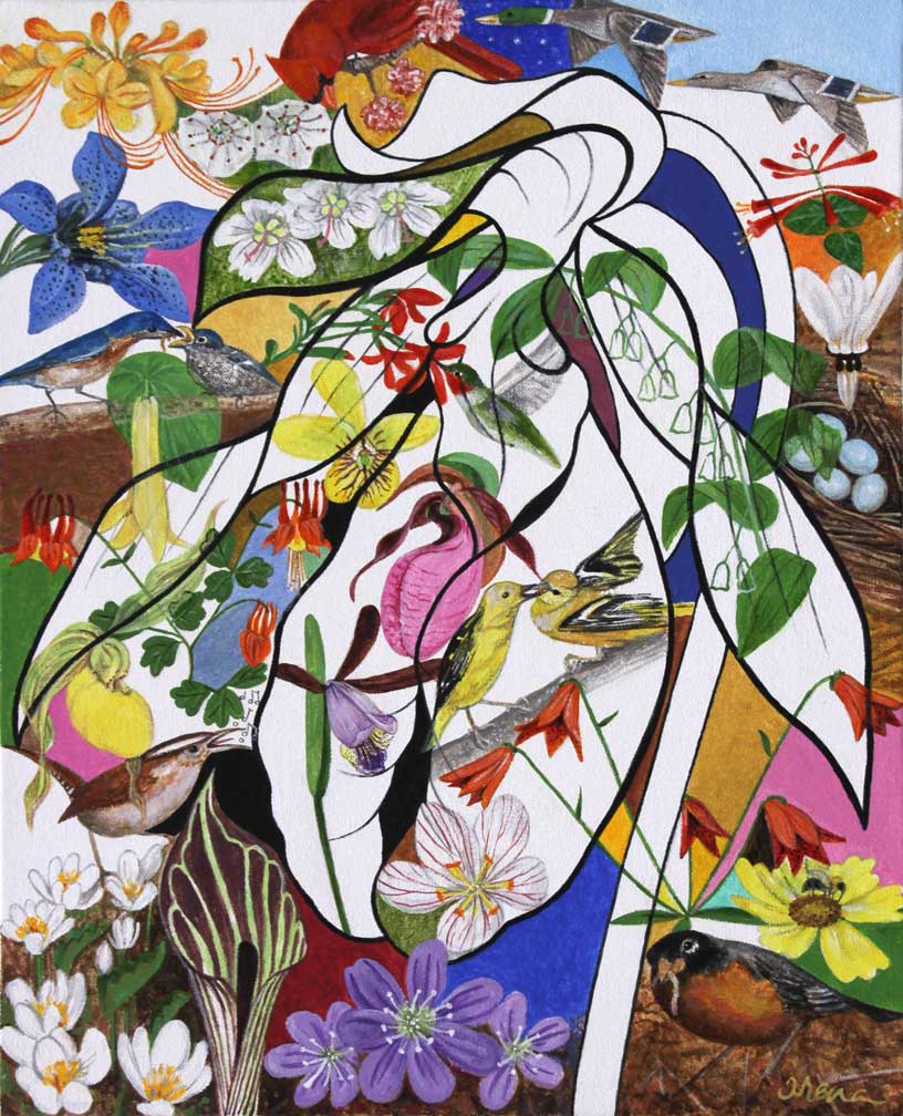 ![]() BERRIES, BIRDS & BLOOMS Acrylic & Ink 24" x 30" Detail 1 - Detail 2 - Detail 3 - Detail 4 $2000 |