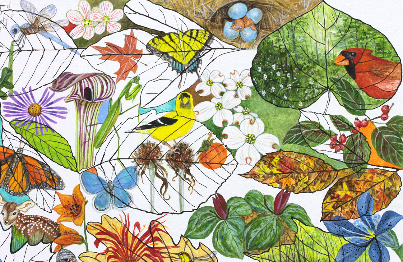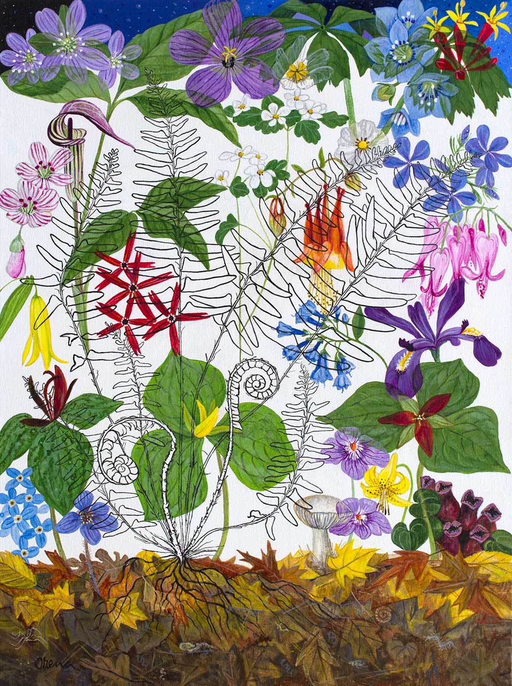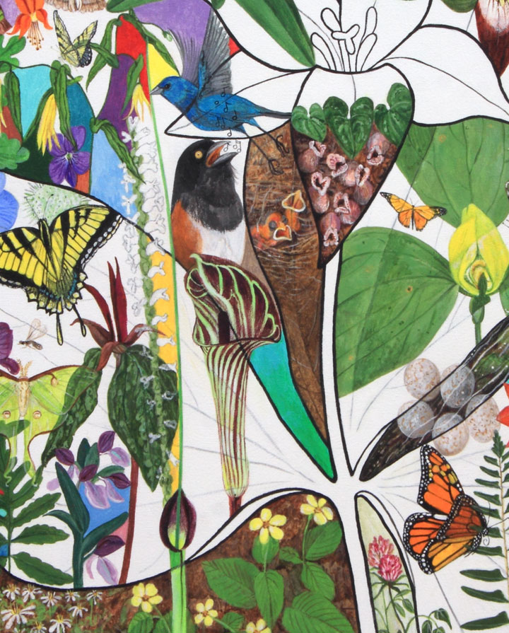 ![]() WAKE ROBIN Acrylic, Pressed Leaves and Flower on Paper Board 15.5" x 22.5" $450 (framed with glass) |