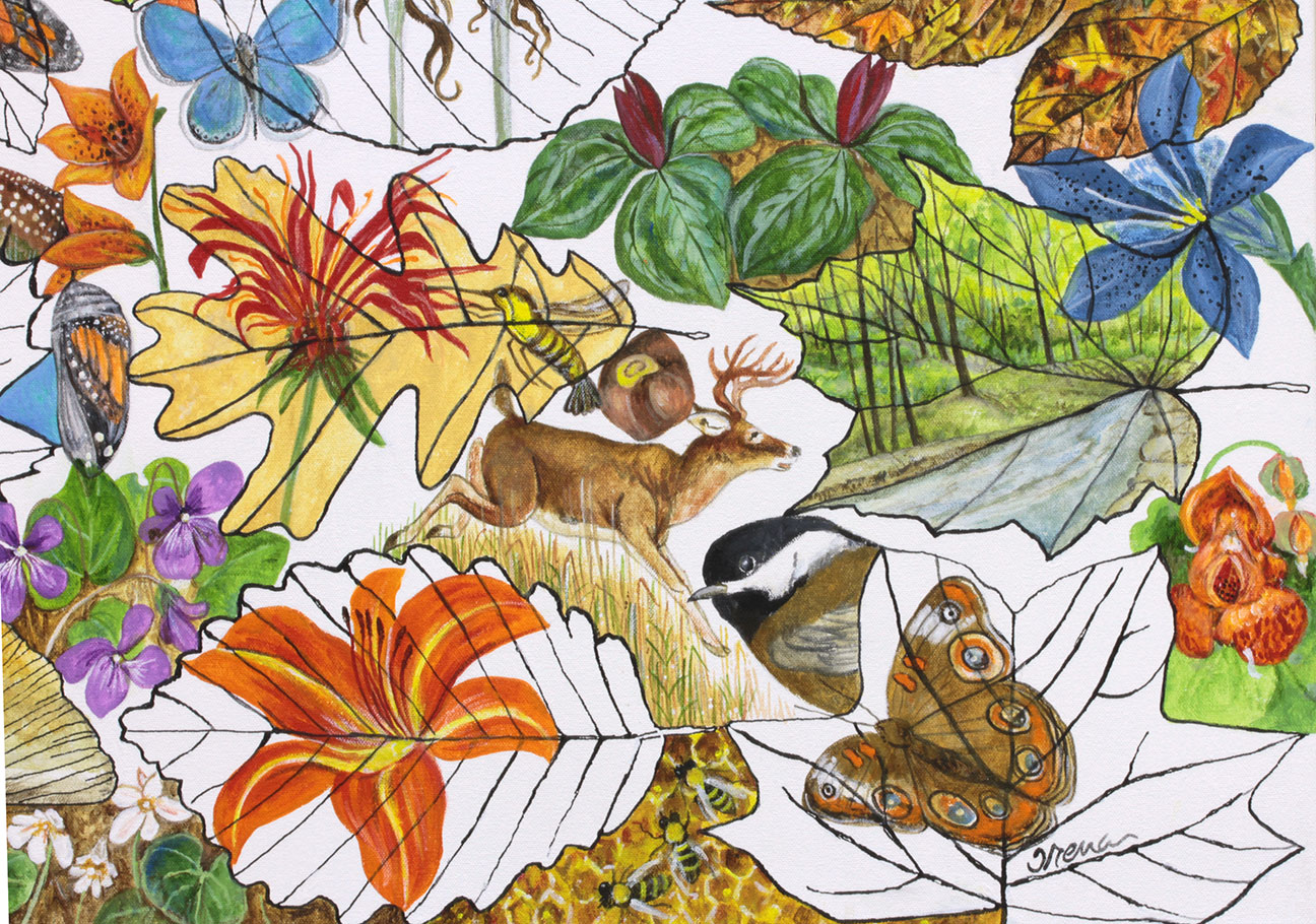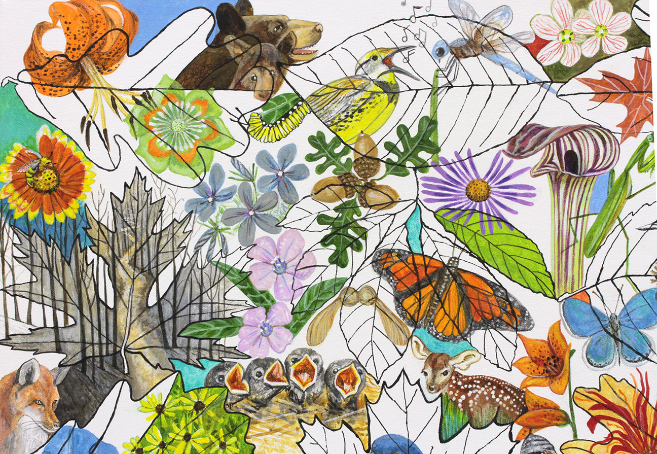 ![]() LEAVES & WILDLIFE Acrylic and Ink 24" x 36" Detail 1 - Detail 2 - Detail 3 - Detail 4 $2200 |