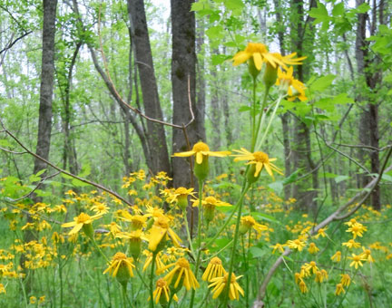 Photos, left to right by rows: Top Woods with Golden ragwort; Second Woods with ferns