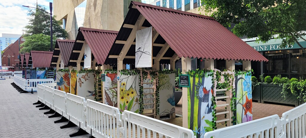 The vinyl print was used for "Hutlets"to add outdoor dining during the pandemic.