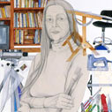 I am choosing my subjects based on their story. I want to produce a quantity of diverse portraits which will show people in all walks of life, all ages, all social, ethnic and economic backgrounds. The drawing of the person predominates each portrait with the overlapping and interlocking images of their life surrounding them much like a frame.