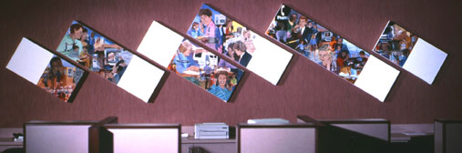 In this painting I tried to capture the feeling that we are all one family of credit union members. The images and scenes depict credit union members interacting with other family members. These family relationships span our families, jobs and leisure activities. That same sense of family extends to all members of the credit union as we share in its ownership.