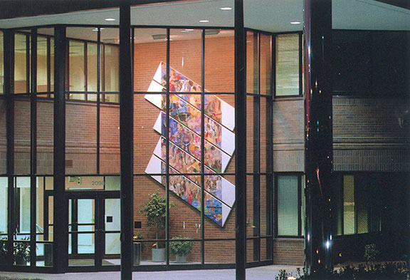Three locations. Behind the Teller Counter: 6 panels, total size of the assemblage is 48" x 204" x 2"