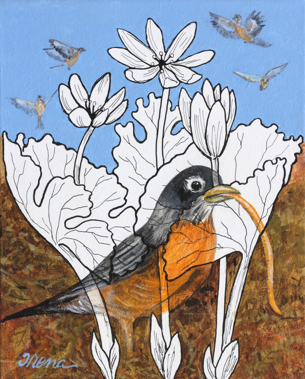 ![]() WAKE ROBIN Acrylic, Pressed Leaves and Flower on Paper Board 15.5" x 22.5" $450 (framed with glass) |