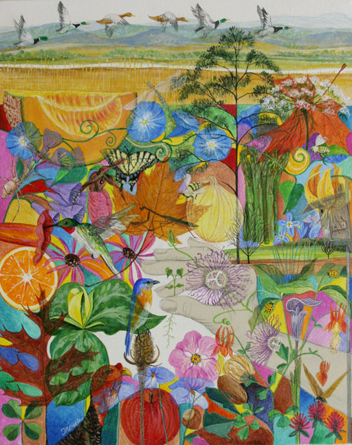 ![]() BERRIES, BIRDS & BLOOMS Acrylic & Ink 24" x 30" Detail 1 - Detail 2 - Detail 3 - Detail 4 $2000 |