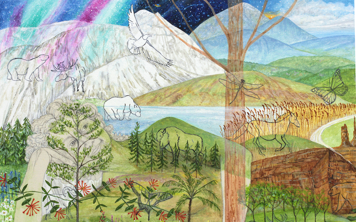 ![]() MOTHER EARTH - TIES THAT BIND Acrylic & Graphite 22.5" x 23" Detail $800 |
